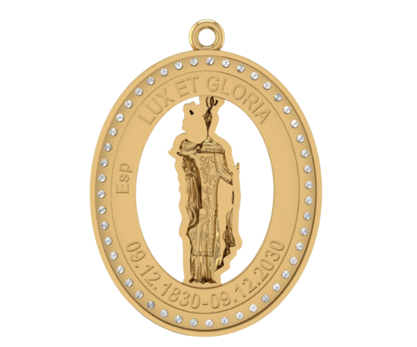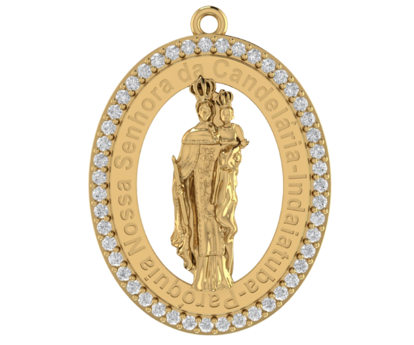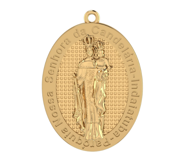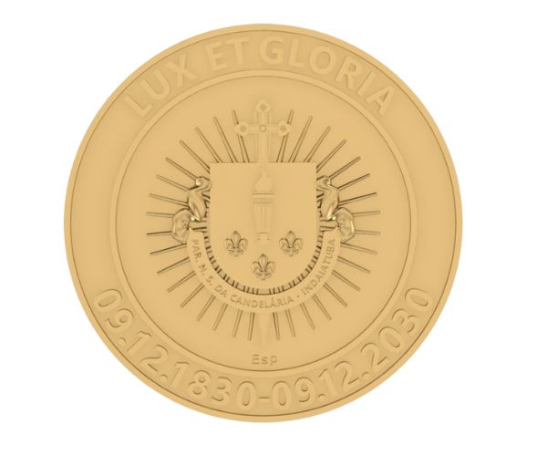 Projeto: 200 anos da Igreja Nossa Senhora da Candelária Moeda Comemorativa Moeda Suporte Pingente Brasão Brasão Caixa Pingente Imagem Santa Santa – azul Caixa Pingente Imagem – masculino Pingente Santa – masculino Pingente Santa – masc. caixa